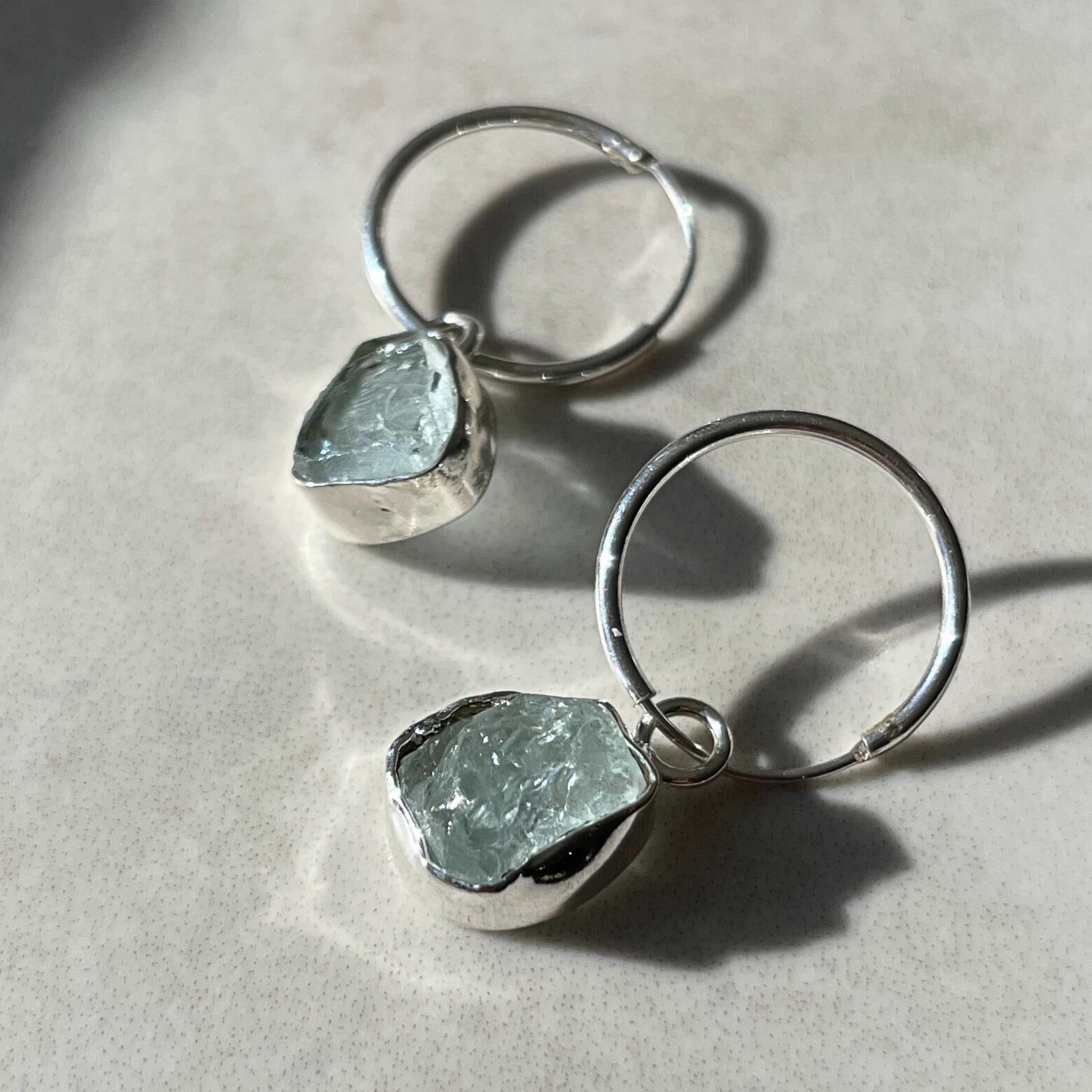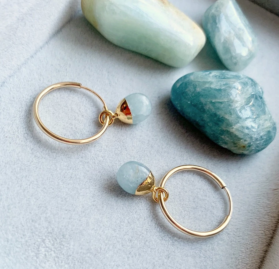 Aquamarine Gem Slice Hoop Earrings | Serenity