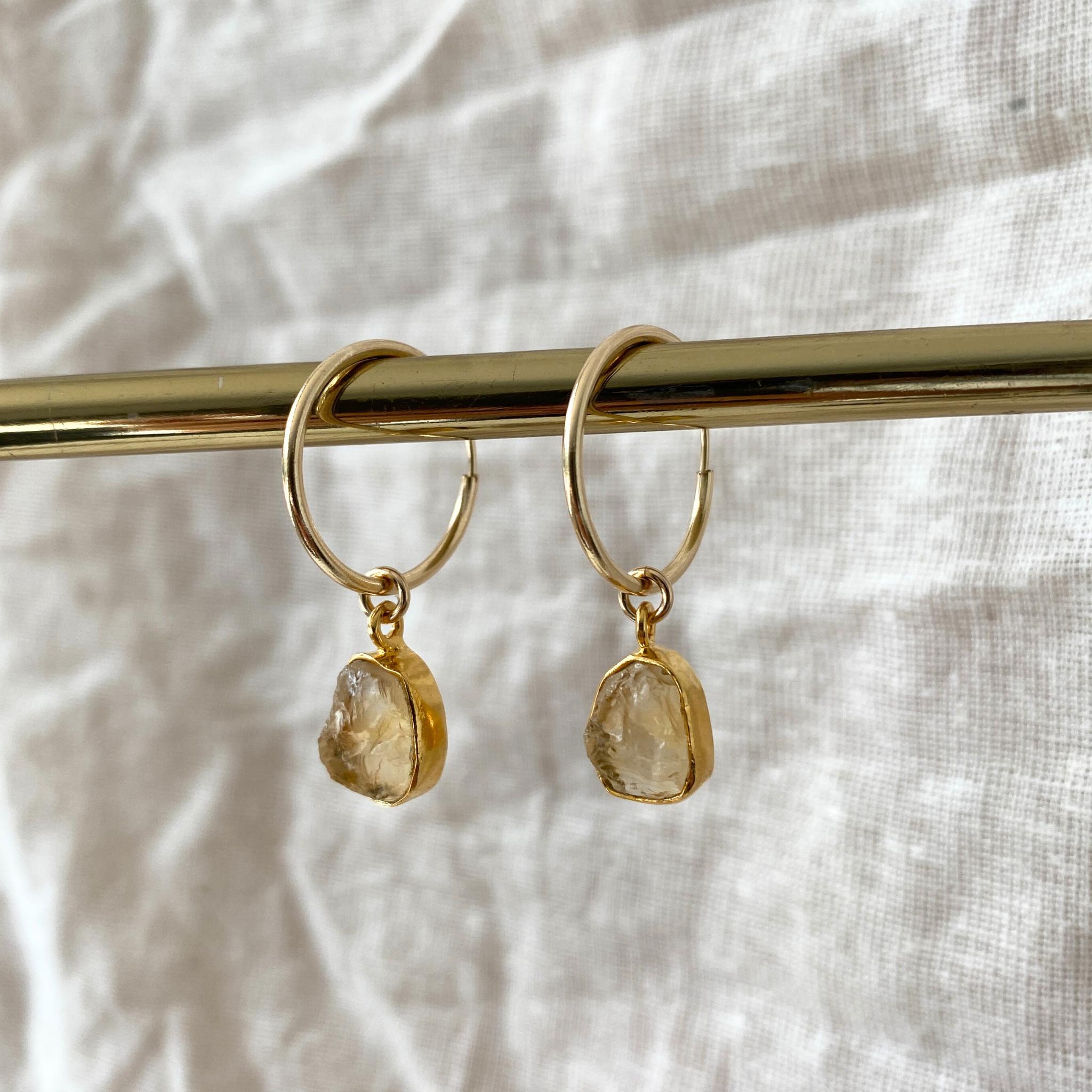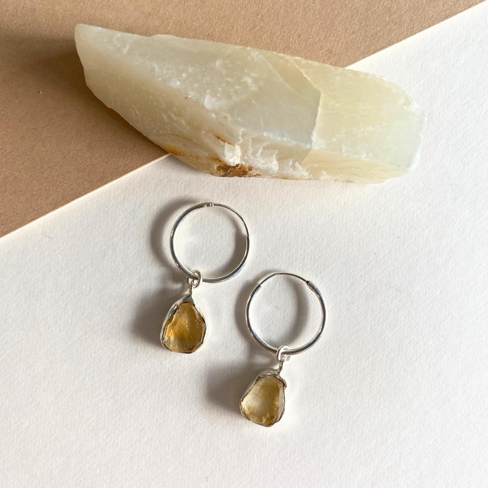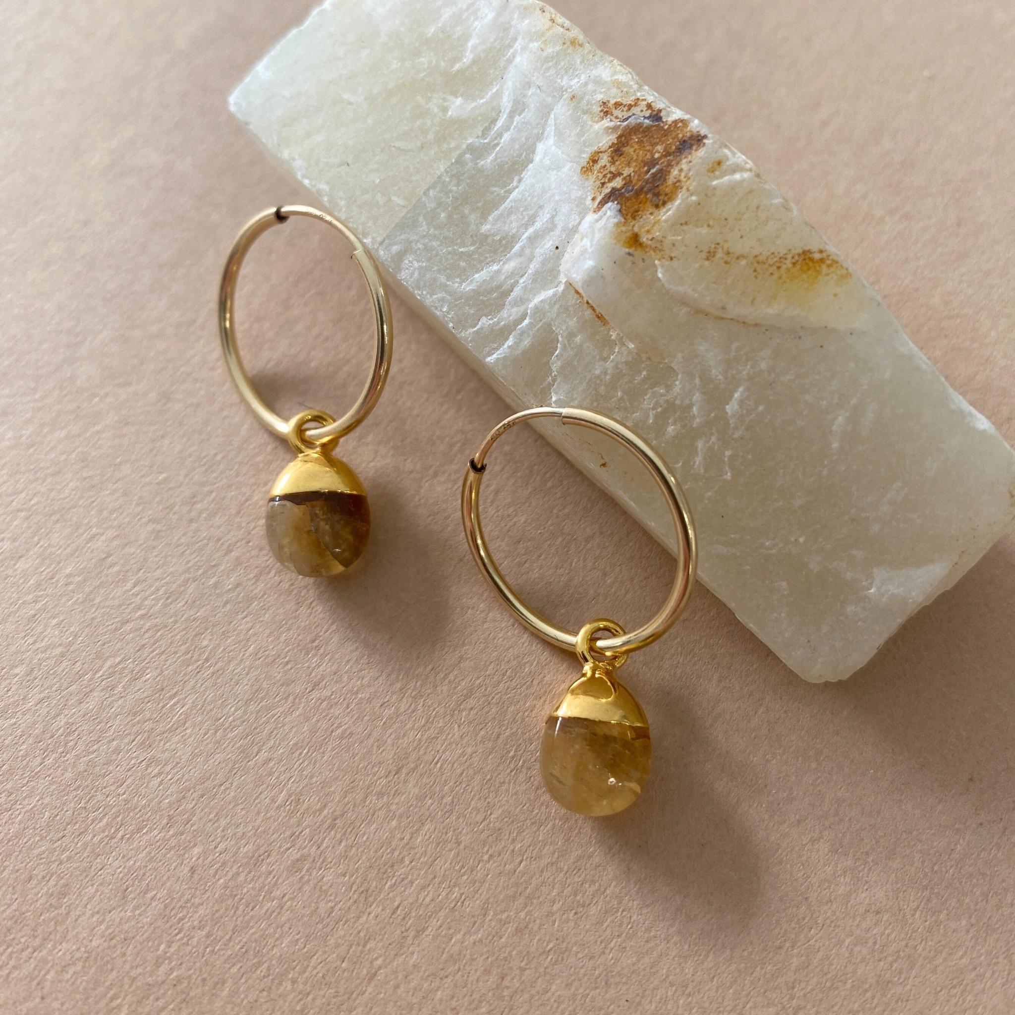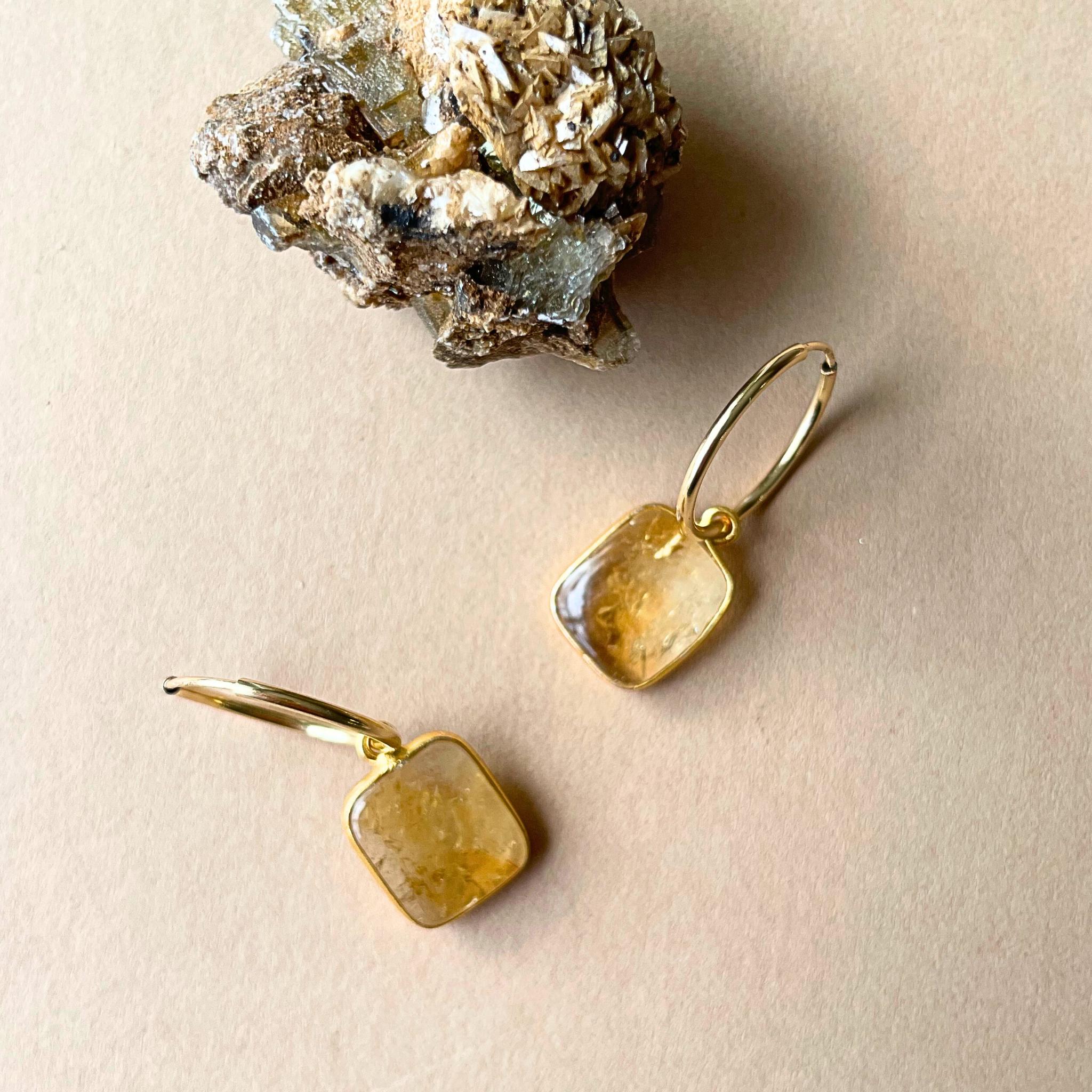 Citrine Gem Slice Hoop Earrings | Creativity & Success