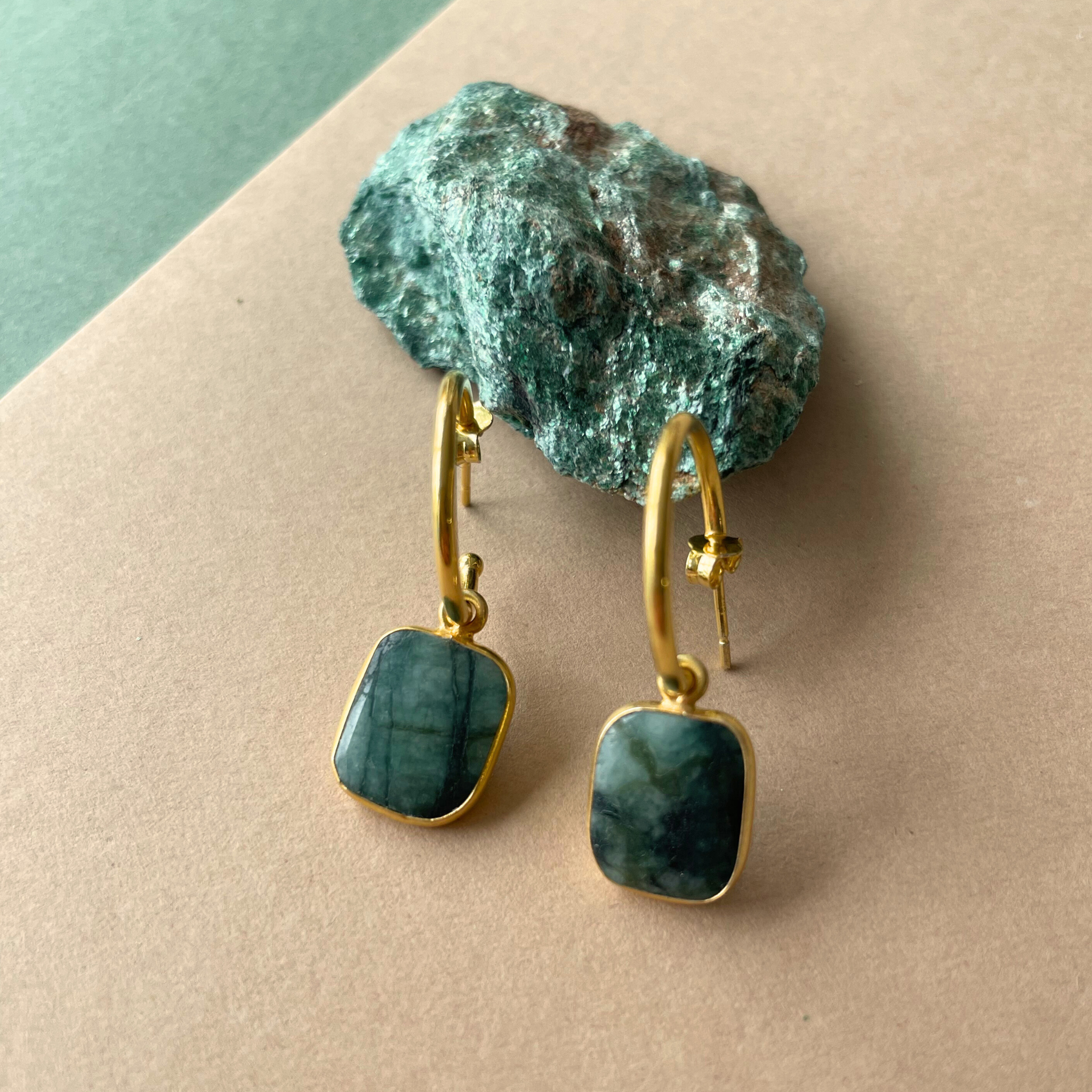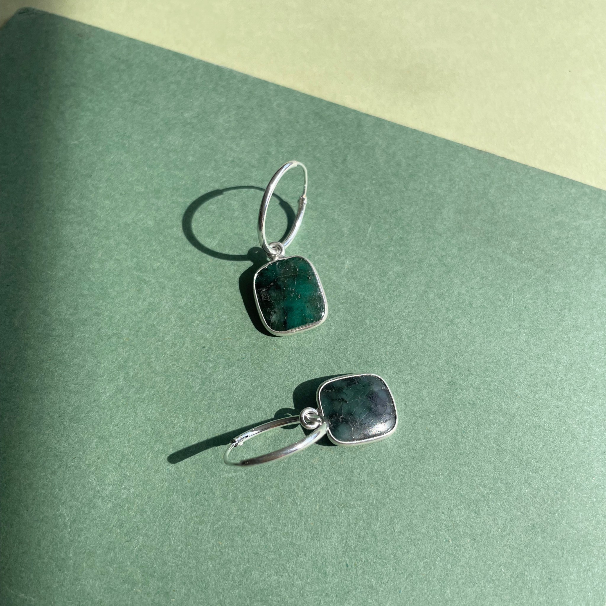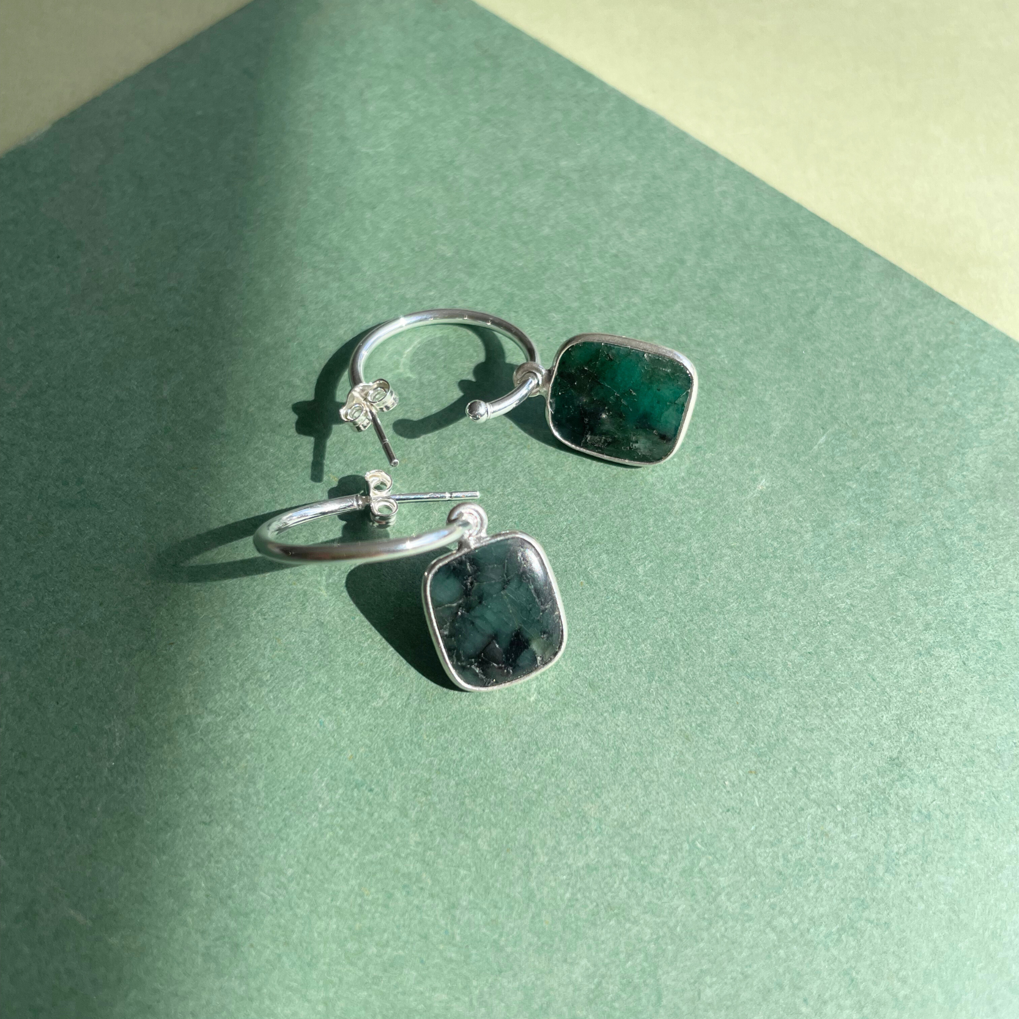 Emerald Gem Slice Hoop Earrings | Hope