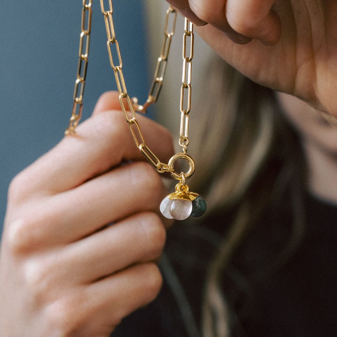 Please note all pendants are gold or silver plated. Chains are gold plated onto brass or 925 solid sterling silver. Care instructions must be followed in order to preserve the plating of your jewels.