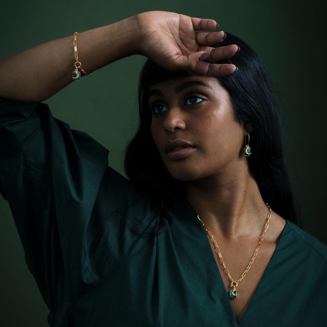 Our bestselling gem slice triple pendants are suspended on a chunky chain bracelet with a large bolt ring clasp.