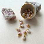 - Tiny tumbled pink opal stone, approx 6mm, dipped in gold