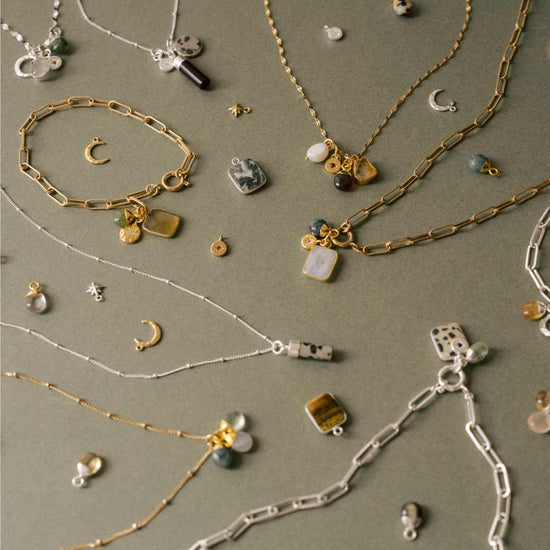 Choose the style of jewellery, in gold-plated or silver, that you would like to create and select your own combination of stones, charms and chain. Whether it's a meaningful gift or a treat for yourself, we’ll handcraft a personalised piece that tells your story. Many of our gemstones are small batch and limited edition, making your jewellery even more unique.